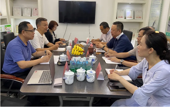2020年8月9日下午,中国塑料加工工业协会理事长朱文玮、副理事长兼秘书长王占杰一行4人到中国塑协塑木专委会主任单位南京聚锋新材料有限公司调研考察。专委会主任、聚锋公司董事长吴劲松,常务副总丁建生、总经理董延京、人事总监钟国霞热情接待并陪同调研。