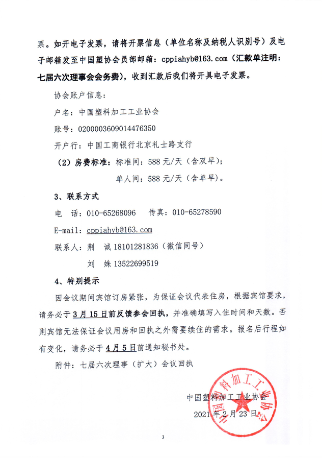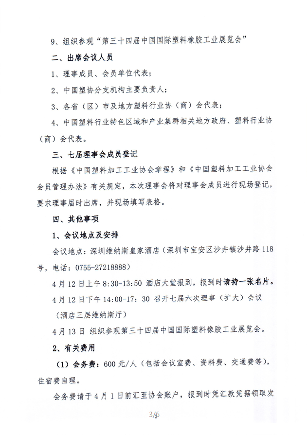 关于召开中国塑料加工工业协会七届六次理事(扩大)会议通知