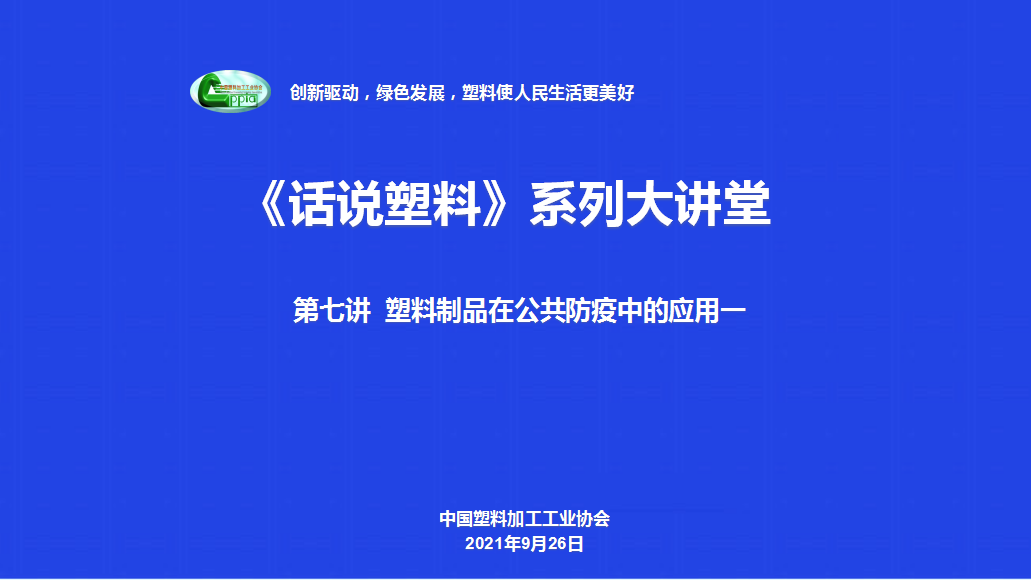 9月27日下午,由中国塑料加工工业协会组织的《话说塑料》大讲堂第七讲 ----塑料制品在公共防疫中的应用一开讲。