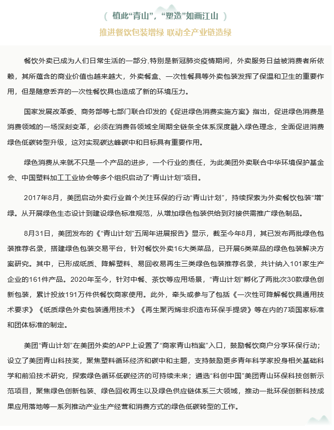 植此“青山”,“塑造”如画江山——推进餐饮包装增绿 联动全产业链造绿