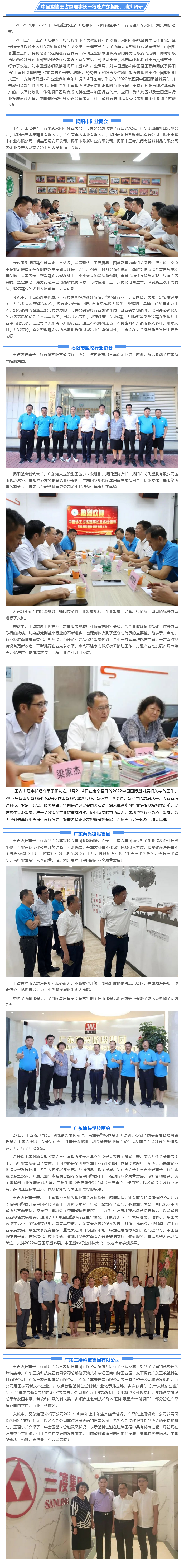 中国塑协王占杰理事长一行赴广东揭阳、汕头调研