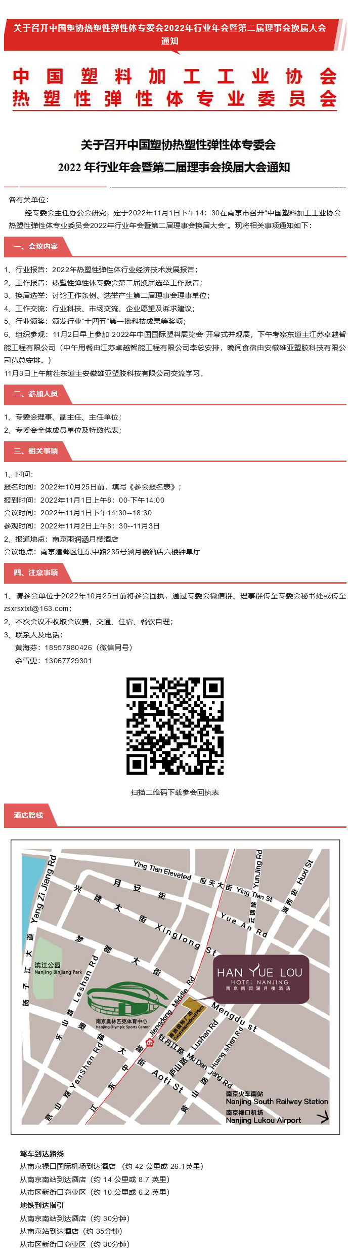 会议 | 关于召开中国塑协热塑性弹性体专委会2022年行业年会暨第二届理事会换届大会通知