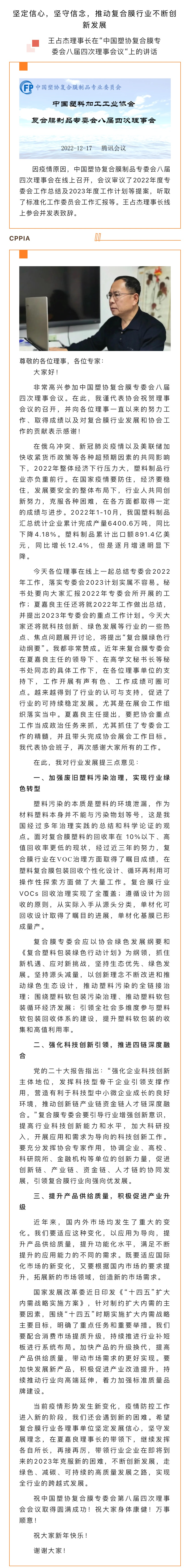 王占杰理事长在“中国塑协复合膜专委会八届四次理事会议“上的讲话