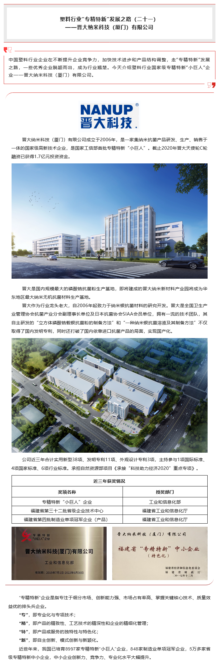 塑料行业“专精特新”发展之路(二十一)—— 晋大纳米科技(厦门)有限公司
