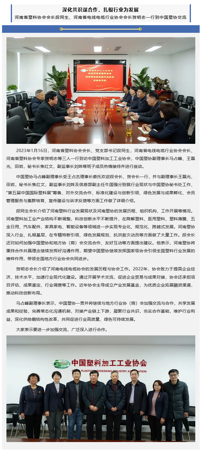 深化共识谋合作,扎根行业为发展——河南塑料协会、河南电线电缆协会领导到访中国塑协