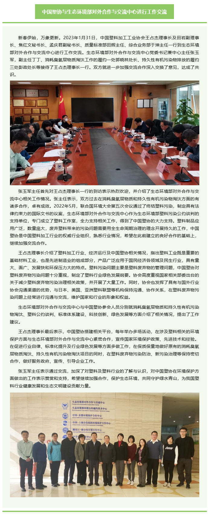 中国塑协与生态环境部对外合作与交流中心进行工作交流