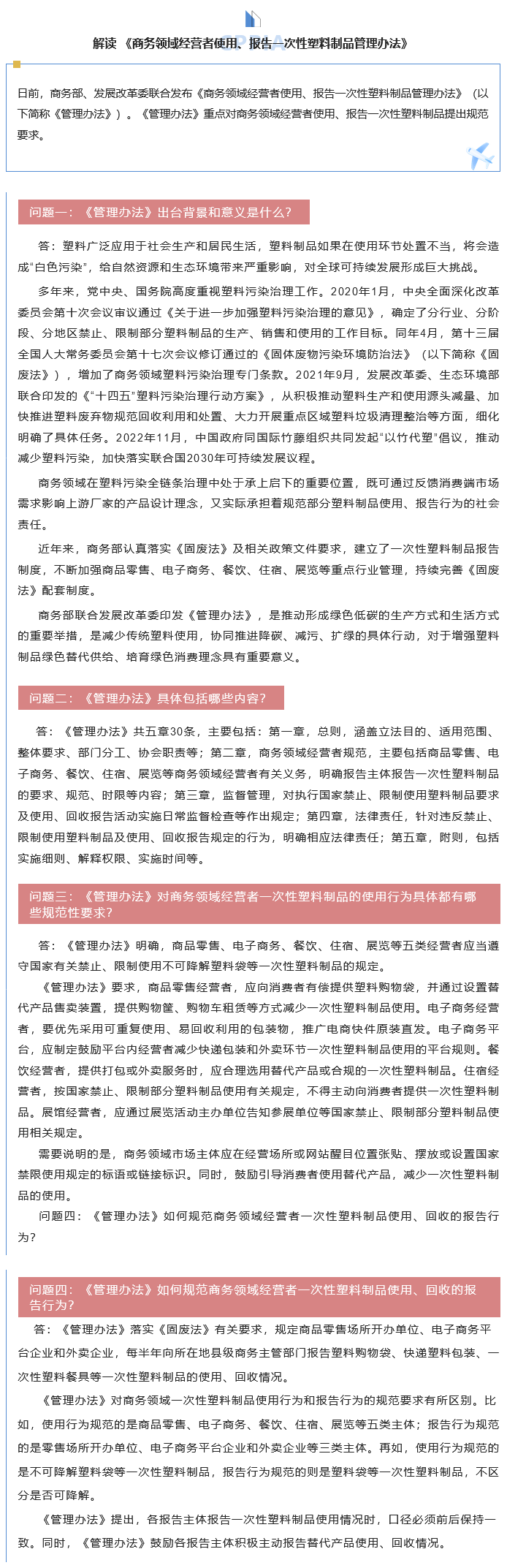 解读 《商务领域经营者使用、报告一次性塑料制品管理办法》