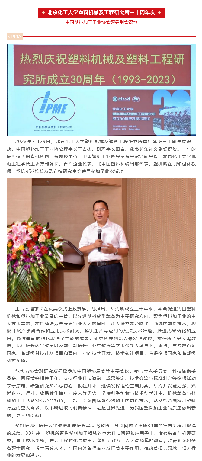 中国塑协领导到会祝贺北京化工大学塑料机械及工程研究所三十周年庆