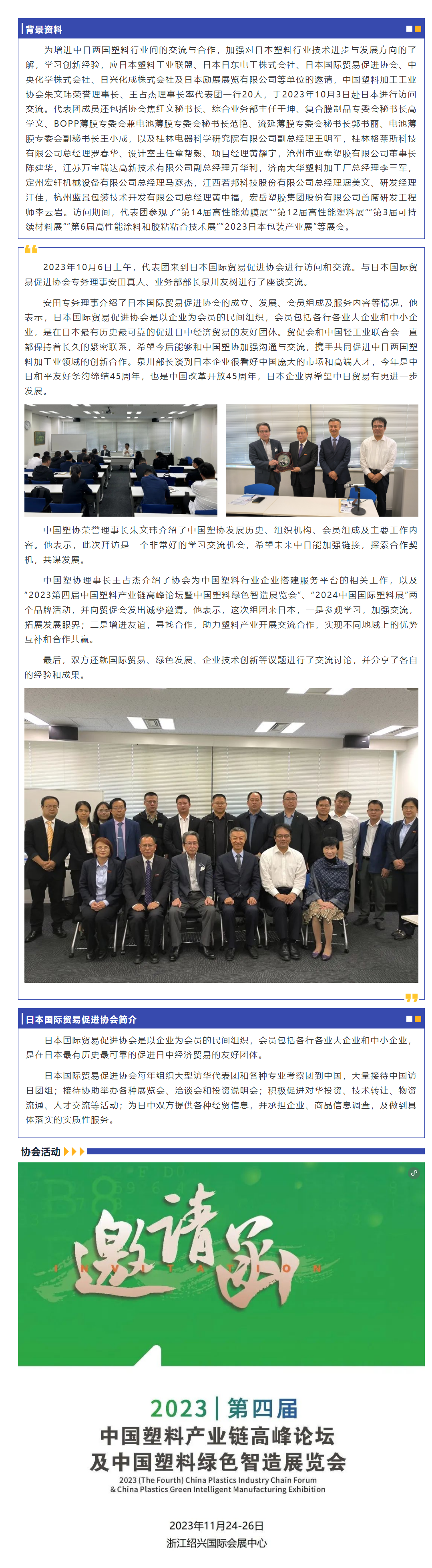 中国塑协组织代表团与日本贸易促进协会进行交流