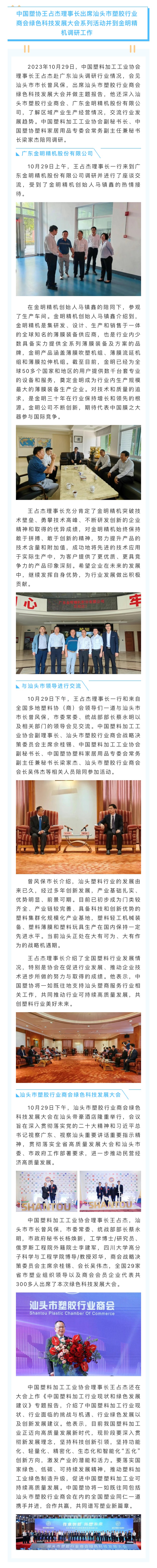 中国塑协王占杰理事长出席汕头市塑胶行业商会绿色科技发展大会系列活动并到金明精机调研工作