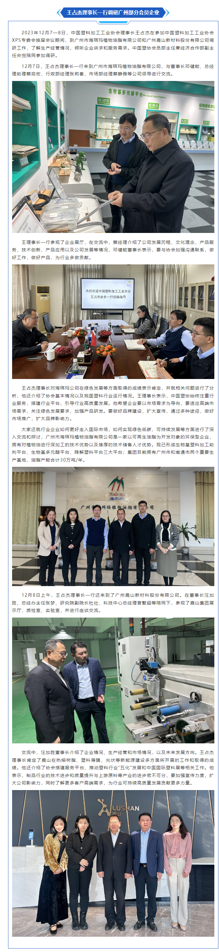 王占杰理事长一行调研广州部分会员企业