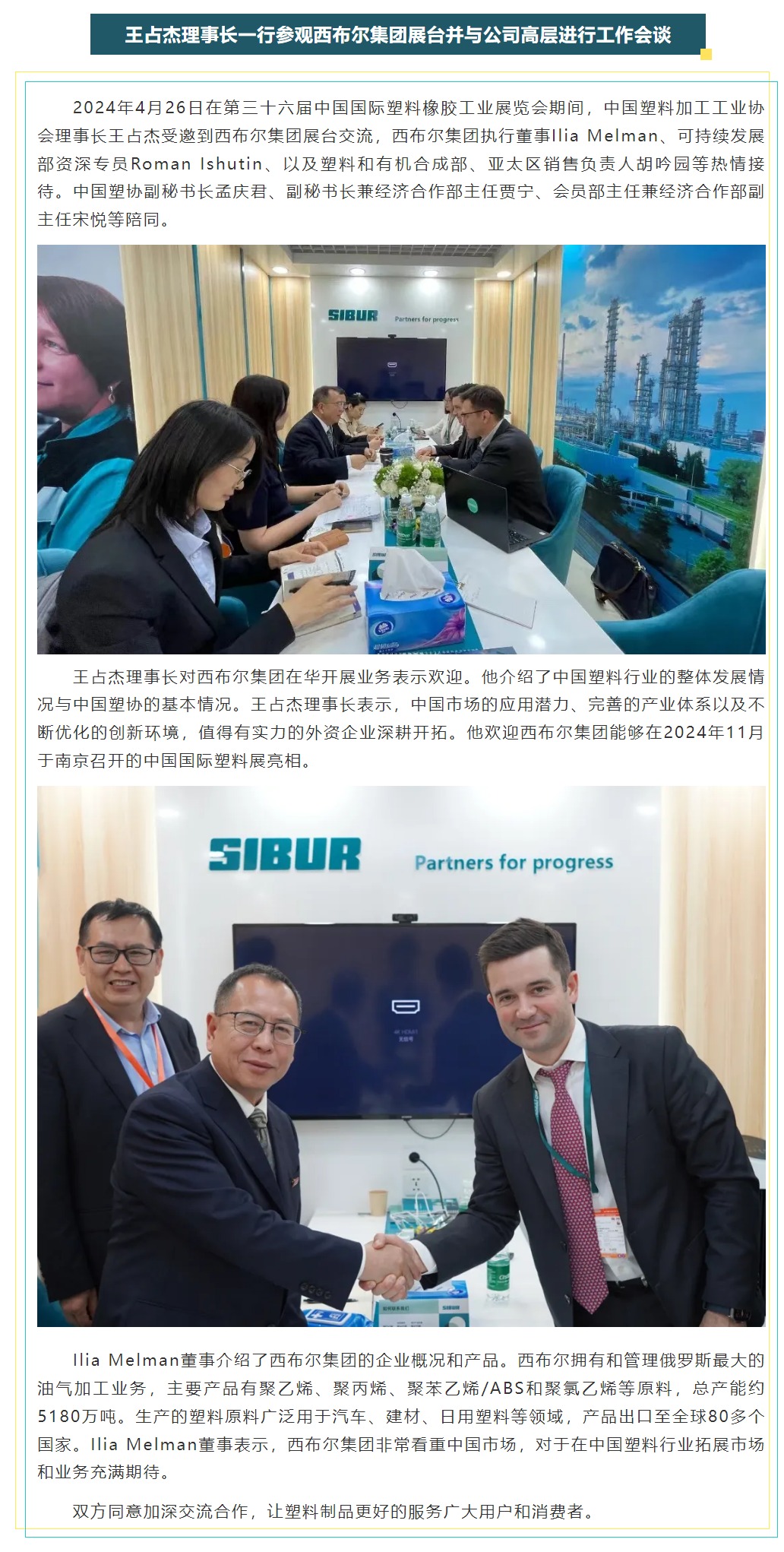 下一篇:开放交流,扩大合作——中国塑协领导在“Chinaplas2024国际橡塑展”期间与部分海外企业和机构座谈交流