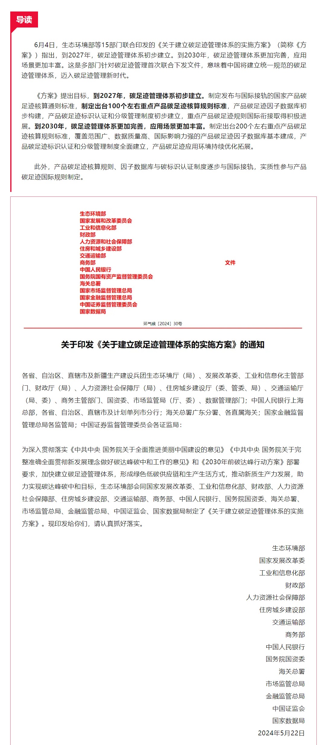 政策速递 | 关于印发《关于建立碳足迹管理体系的实施方案》的通知