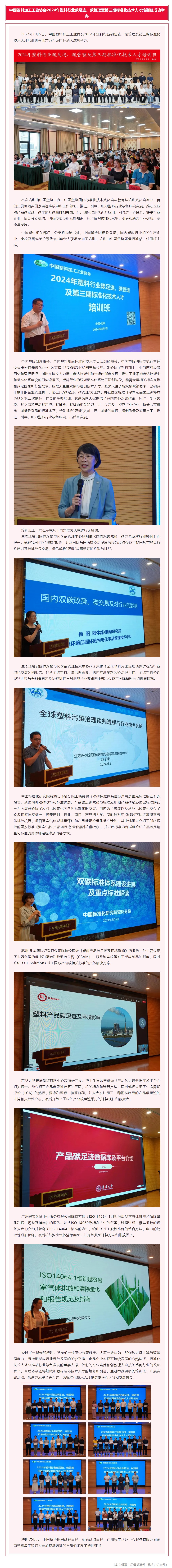 中国塑料加工工业协会2024年塑料行业碳足迹、碳管理暨第三期标准化技术人才培训班成功举办