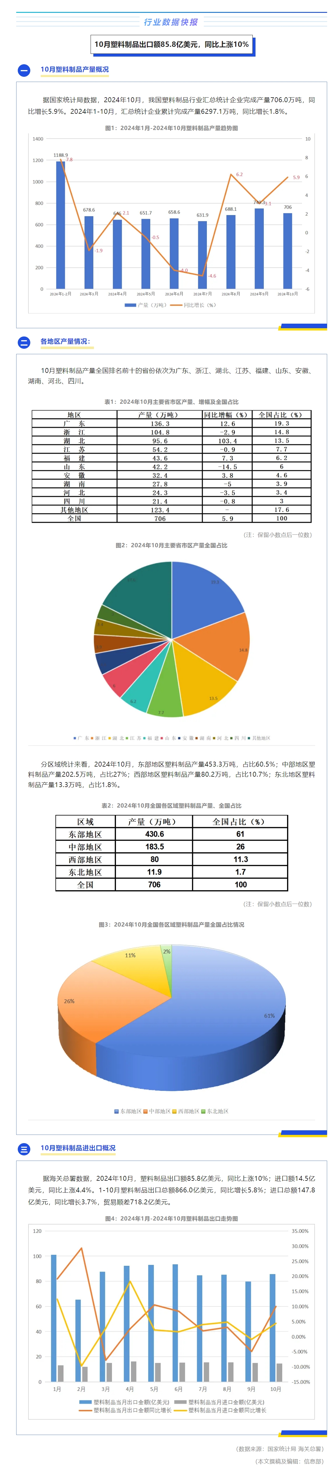 行业数据快报 | 10月塑料制品出口额85.8亿美元,同比上涨10%