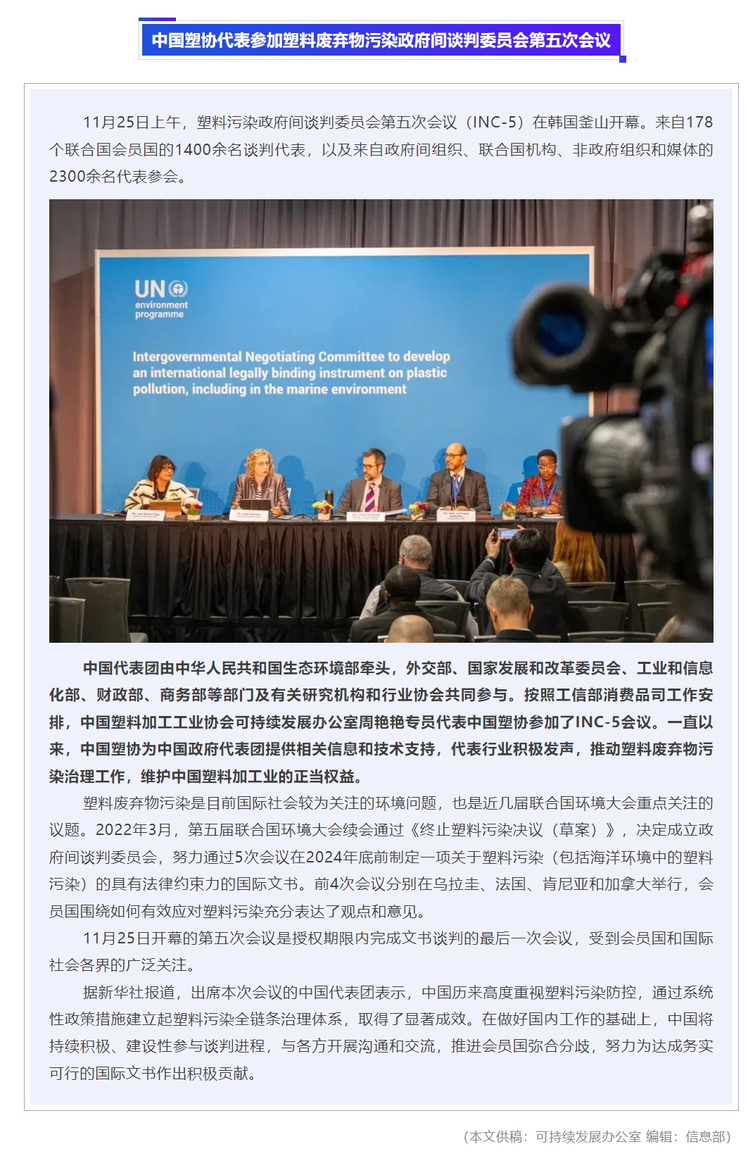 中国塑协代表参加塑料废弃物污染政府间谈判委员会第五次会议