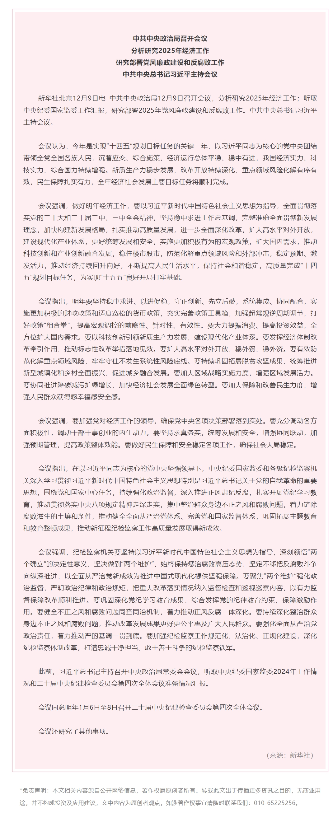 要闻 | 中共中央政治局召开会议 分析研究2025年经济工作 研究部署党风廉政建设和反腐败工作 中共中央总书记习近平主持会议