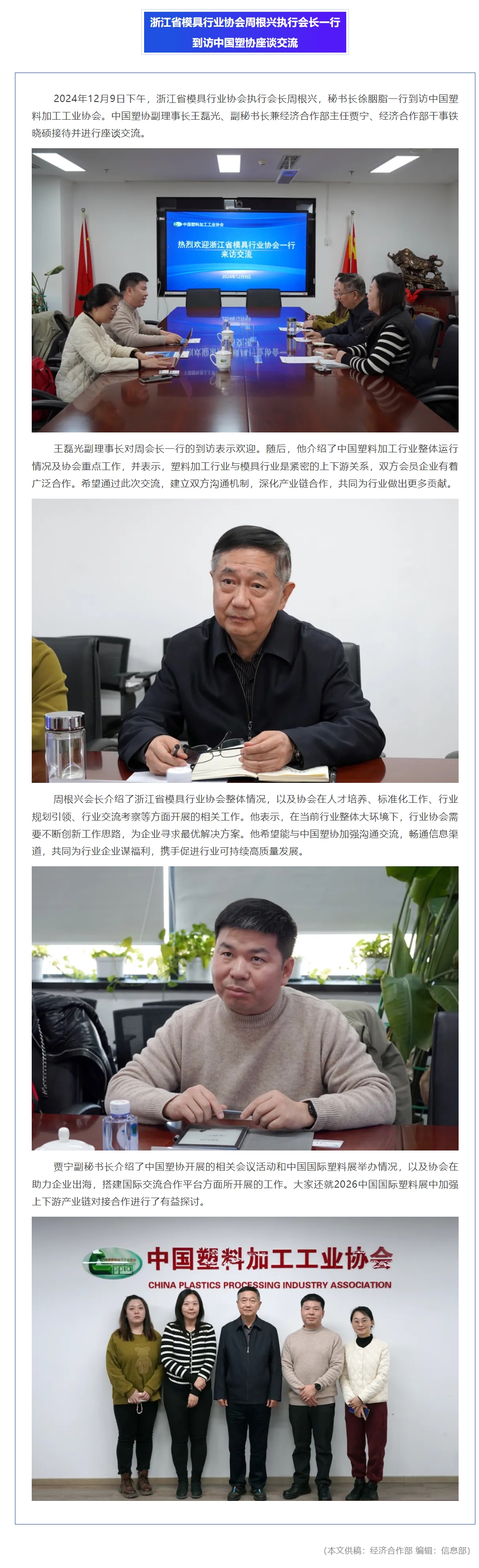 浙江省模具行业协会周根兴执行会长一行到访中国塑协座谈交流