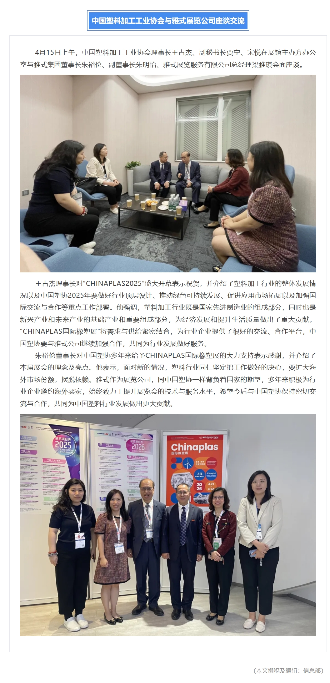 中国塑料加工工业协会与雅式展览公司座谈交流