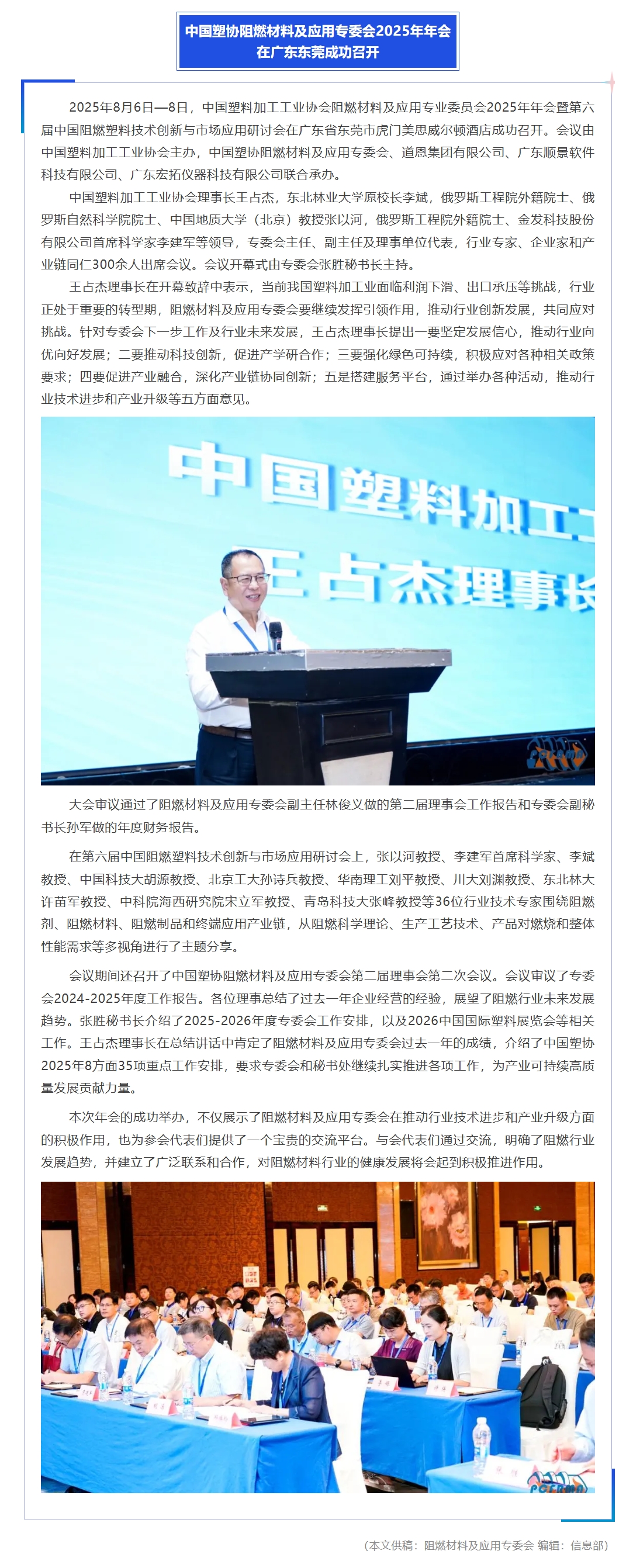 中国塑协阻燃材料及应用专委会2025年年会在广东东莞成功召开