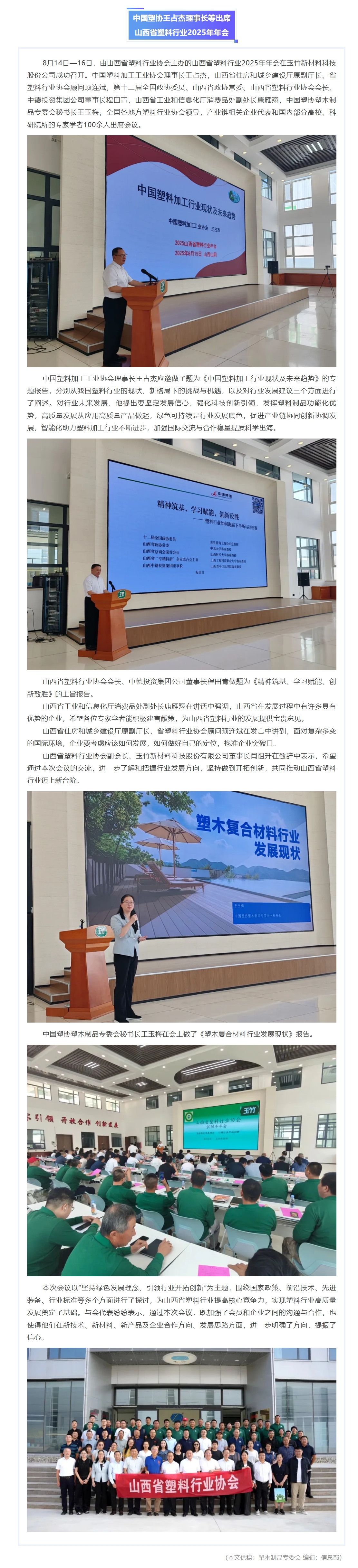 中国塑协王占杰理事长等出席山西省塑料行业2025年年会